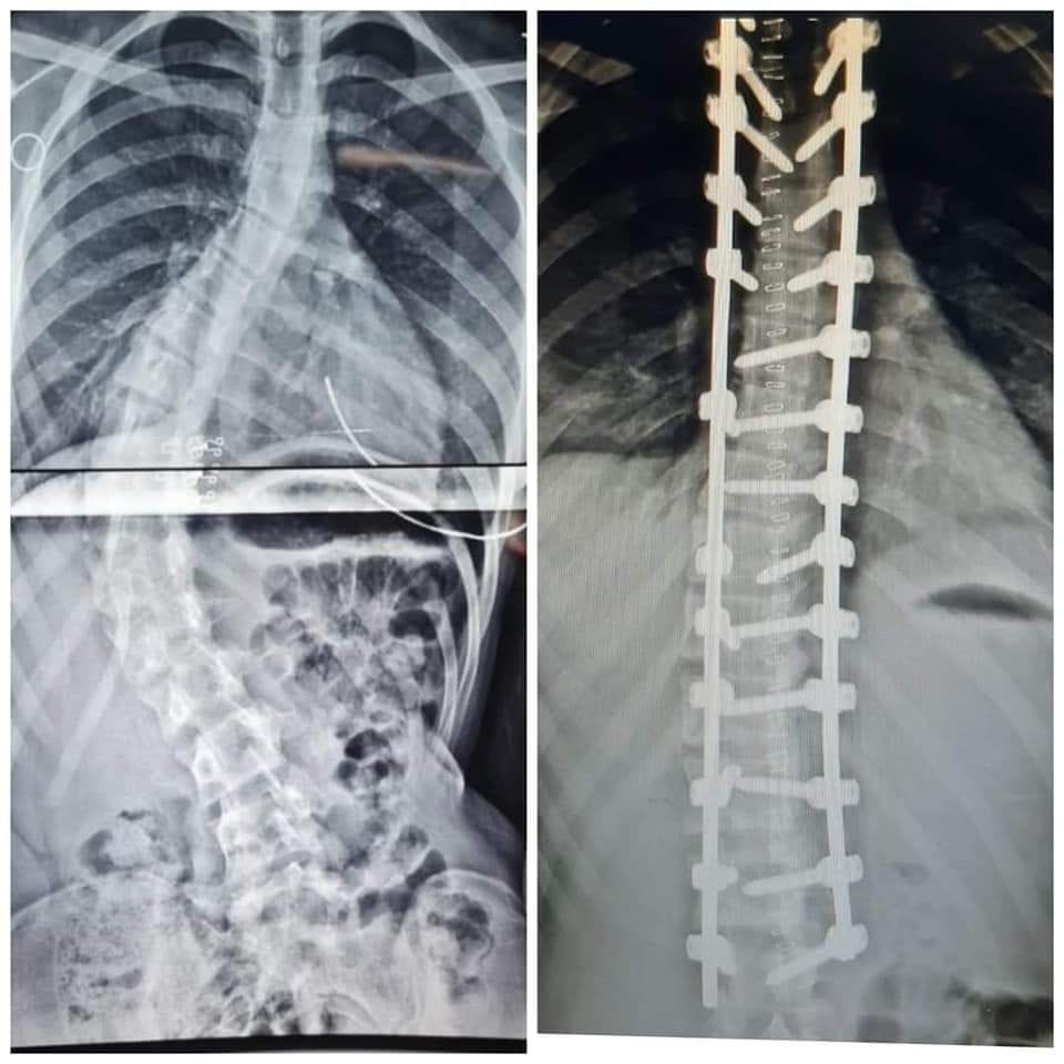 ‎ اجرى فرق طبي جراحي عملية جراحية نادرة لفتاة بعمر 17 سنة تعاني من انحراف في العمود الفقري، بعد اجراء الفحوصات الشعاعية