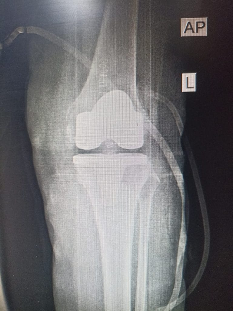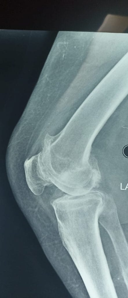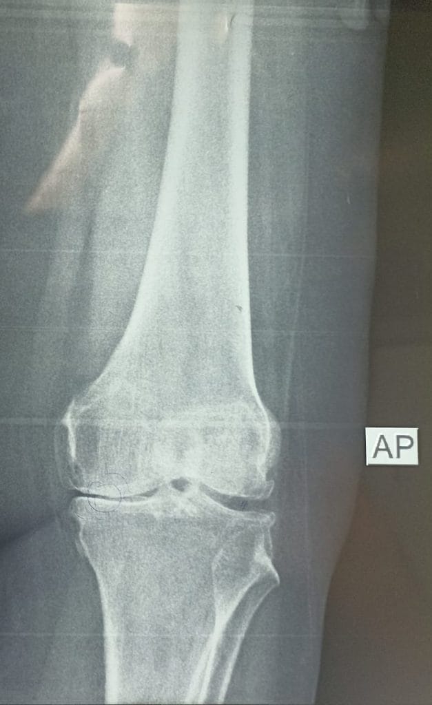 بتأريخ 2022/10/31 راجعت المريضة استشارية العظام والكسور في مستشفى ابن سينا التدريبي وكانت تعاني من ألم شديد في مفصل الركبه اليسرى ، وبعد اجراء الفحوصات السريرية والمختبرية والشعاعية تبين انها تعاني من سوفان شديد و تحدد في مفصل الركبه اليسرى .