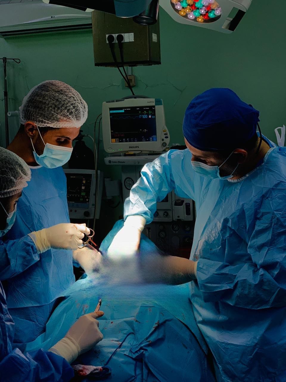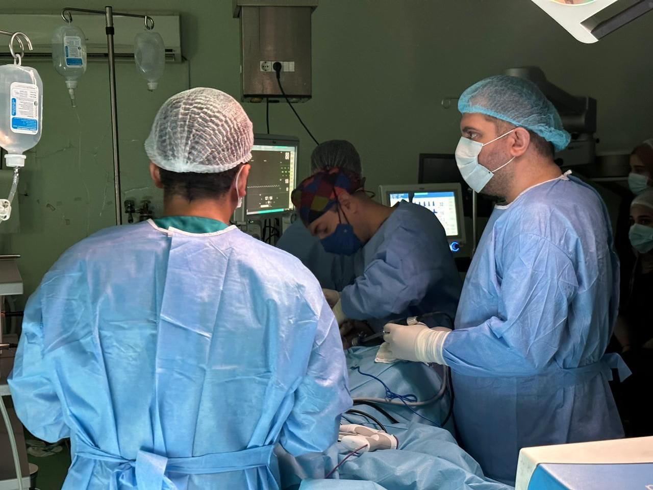 فريق طبي في مستشفى ابن سينا يجري عملية لمريض يعاني من استرواح هوائي بسبب عيب خلقي ولادي .